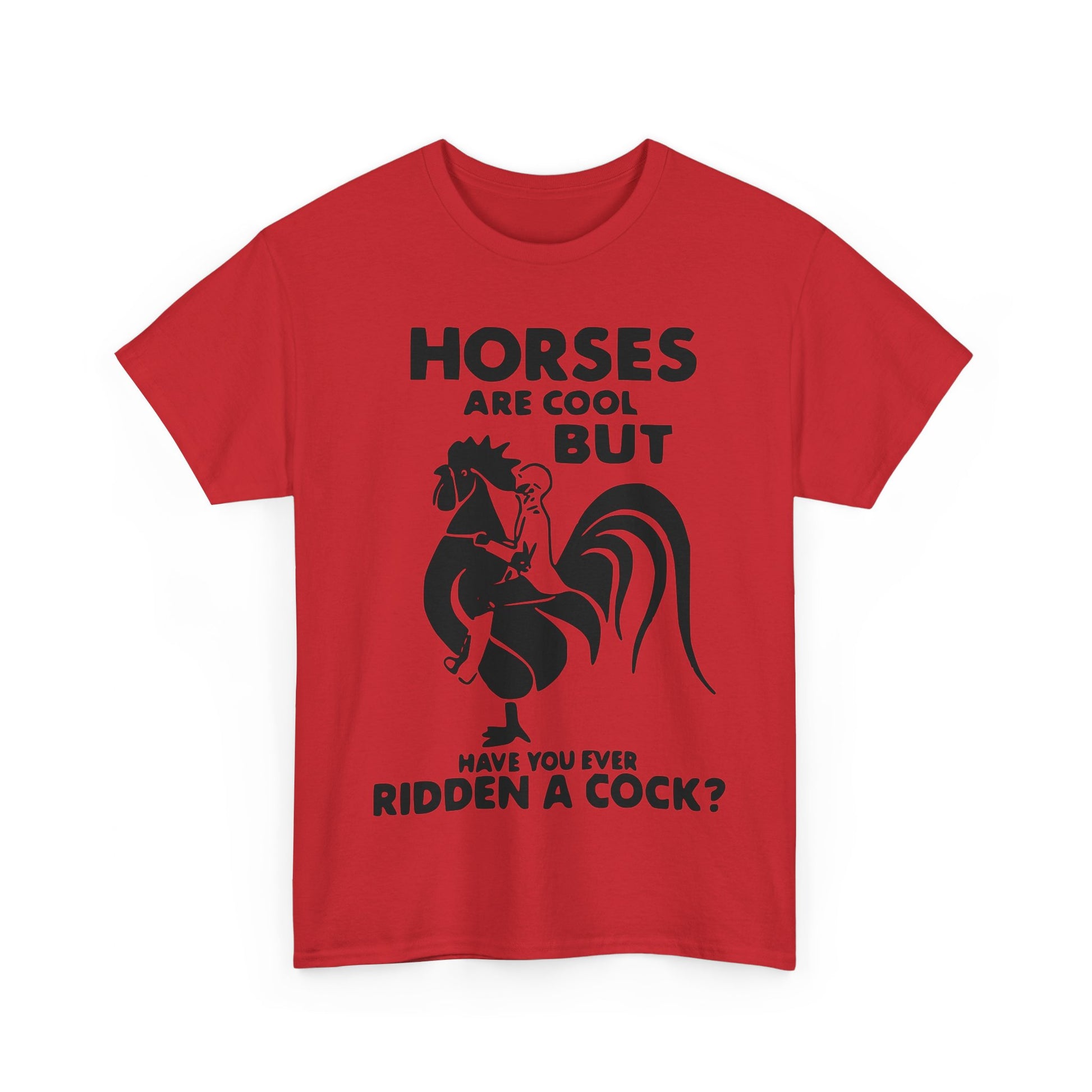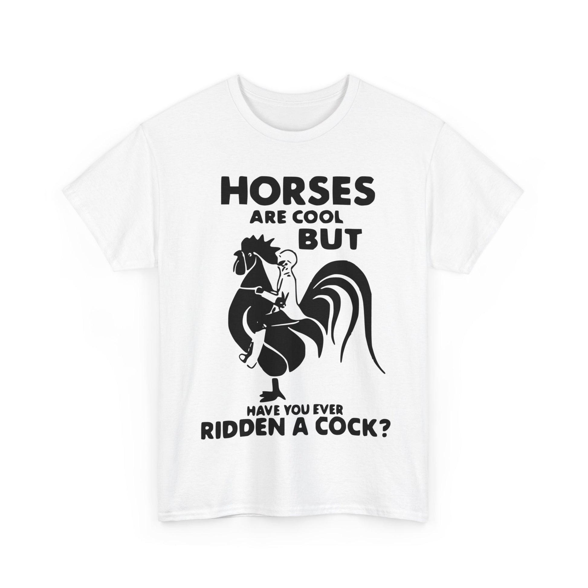 Horses Are Cool But Have You Ever Ridden A Cock - Funny Unisex Heavy Cotton Tee